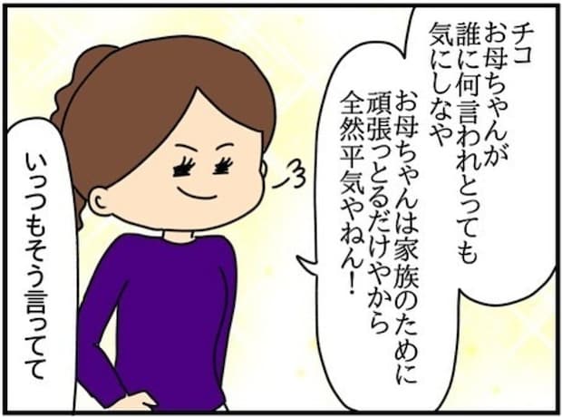 父親の不倫によって家族が崩れ、母との二人暮らしが始まったチコちゃん。母はドケチの片りんが見え隠れするようになりますが、周りに非難されても、「家族のために頑張ってるから大丈夫」とチコちゃんに伝えていました。