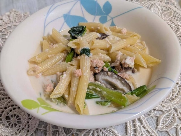 牛乳と鮭フレークを合わせてクリームソースを作ってみたところ、これが大正解。