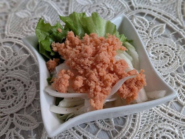 ドレッシング代わりに使うと、鮭の旨味と程よい塩気が玉ねぎの甘みを引き立て、野菜が驚くほど美味しく食べられます。