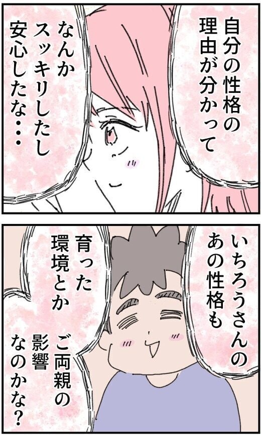 「二人みたいな大人になりたくて、私は頑張ってたんだよ」母の後悔の言葉を受け、そう伝えたかおりさん。そして、自分の性格のルーツを知り、少し心が軽くなるのでした。