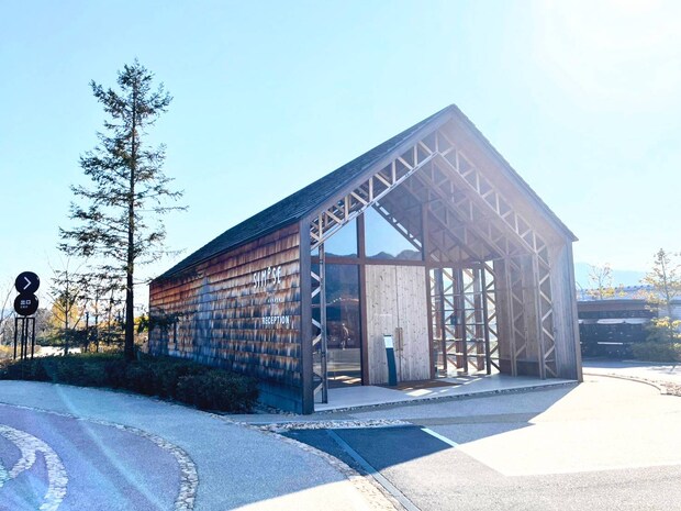 旅の始まりと終わりは木の香り漂うレセプション棟で。