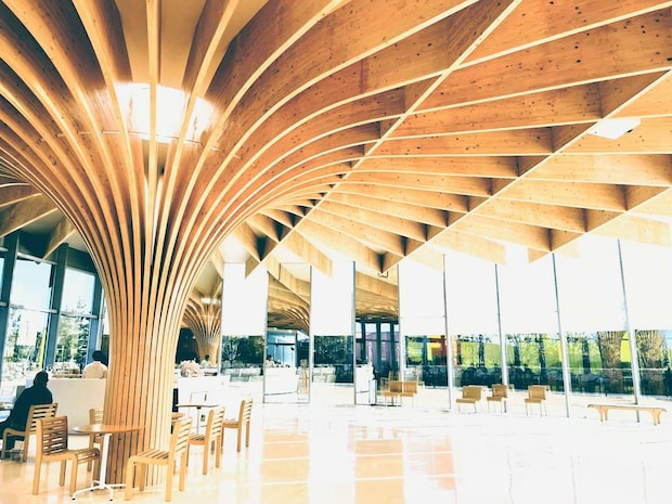 心地よい時間は瞬く間に過ぎ、チェックアウトの時間。旅の終わりは木の香りがする三角屋根のレセプション棟で。送迎車で「SIMOSE」を後にしながら、夢のような滞在を振り返る。ここでは見るもの、触れるもの、すべてがアートだった。でも、滞在を終えてもなお、私の中のセンサーはONのまま。すべては真似できない。でも、一部なら。なにげないディスプレイ、モノ選び、植物との距離……。日々の暮らしの中にアートを添えるヒントを貰えた。そうだ。事始めに家に戻ったら、買ったままクローゼットの中で眠っているヒノキの精油でも開けてみようか。
