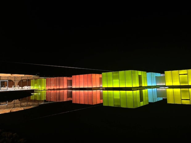 ライトアップされたキューブを眺められるのは宿泊者の特権。