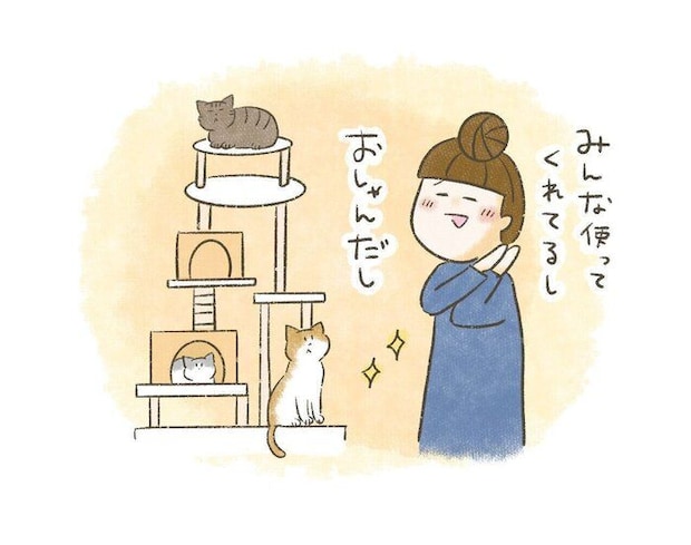 見た目に一目惚れしてテンションはルンルン。猫たちもみんな使ってくれて、買ってよかった!と心の中でベストバイ第1位に確定。