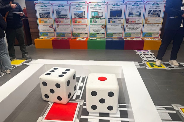 「地方創生SDGs取組展示」の一部。桃太郎電鉄に登場するサイコロの巨大レプリカを転がし、出た目の数で景品がもらえました