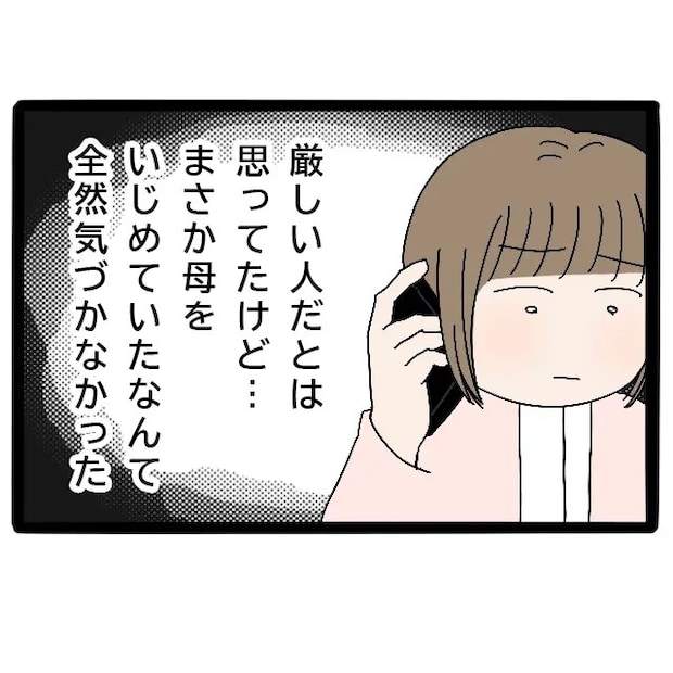 厳しい人だとは思っていたけど、まさか母をいじめていたなんて、幼かった私はまったく気づいていませんでした。きっと母は私たちに心配をかけまいと、どれほどつらくても、その気持ちを表に出さないようにしていたのだと思います。