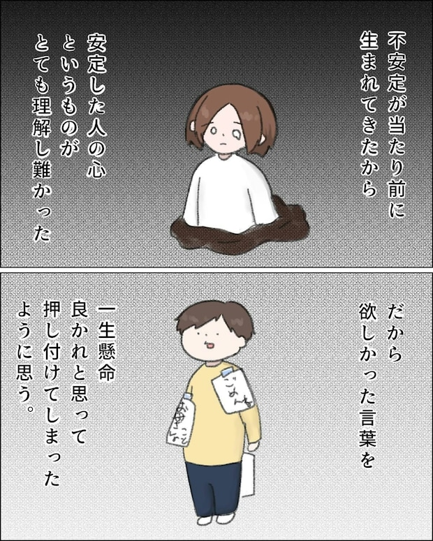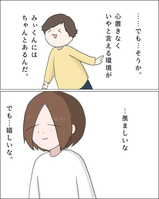 ついつい幼少期に自分のしてほしかったことをみぃ君にしようとしてしまうことに、自分とみぃ君は違う人間なんだと認識すると心のパズルがはまったような感覚になるのでした。