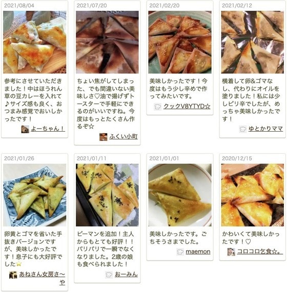つくれぽ(みんなのつくりましたフォトレポートのこと)にも「皮がパリパリしておいしい!」「家族に好評ですぐに売り切れました」「パーティでいつも作っています!」など、レシピの手軽さやおいしさを絶賛する声がたくさん届いています。