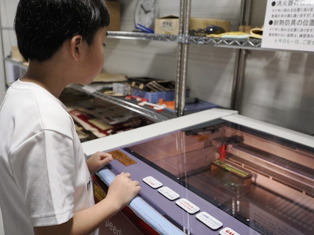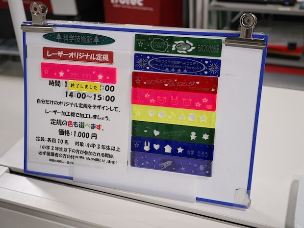 息子が最初に体験したのは、2階E室「ものづくりの部屋」で土・日曜に開催されているワークショップ「レーザーオリジナル定規づくり」。