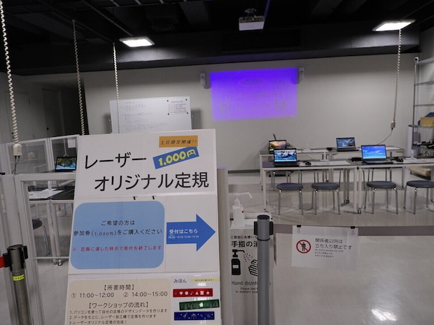自分だけのデザインを考え、それをレーザー加工機で形にしていく人気プログラムです。開催時間は、11:00~12:00と14:00~15:00の2回で、都合に合わせて選べます。