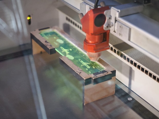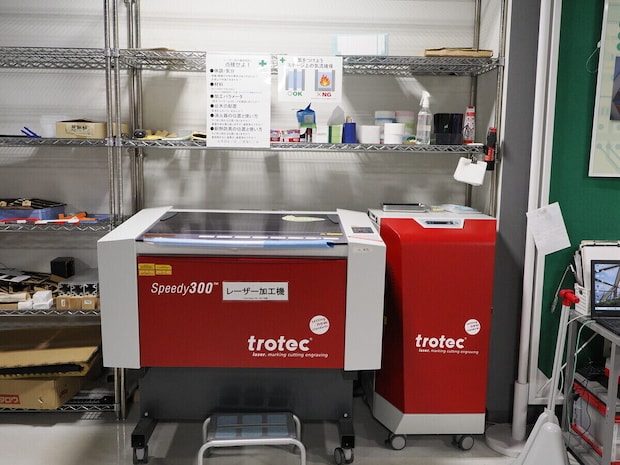 ここから先は、いよいよレーザー加工機の出番。スタッフがパソコンのデータを加工機へ送り、いよいよ加工が始まります。