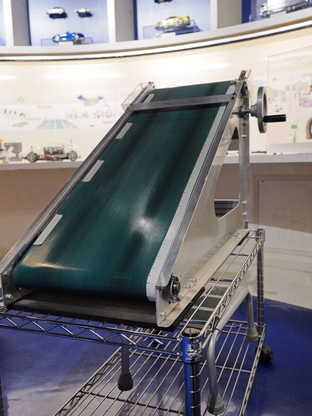 ハイブリッド車が、坂道などでスピードを落とすときに電気をためる「回生ブレーキ」も紹介されました。そのしくみを体感できるのが、こちらの「坂道マシン」です。