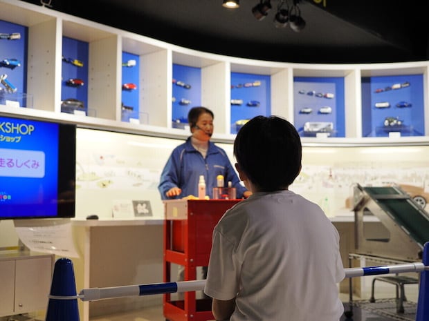 続いて参加したのは、2階D室のワクエコ・モーターランドで土・日・月曜に開催されている「クルマが走るしくみ」。ガソリン・電気・ハイブリッド、それぞれの動力のしくみを学べる内容で、参加費無料(入館料のみ)・予約不要で気軽に参加できるプログラムです。