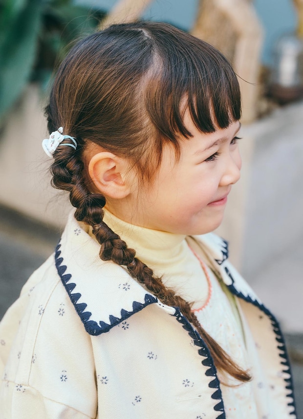 タイトな三つ編みアレンジで、コーデにメリハリをオン! お気に入りのヘアゴムで結んで、おしゃれが楽しくなる装いに昇華♪
