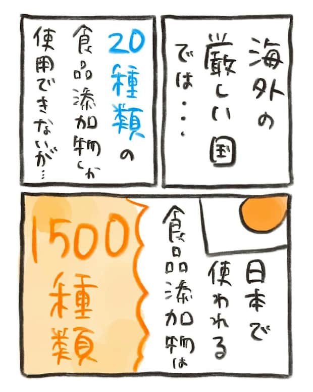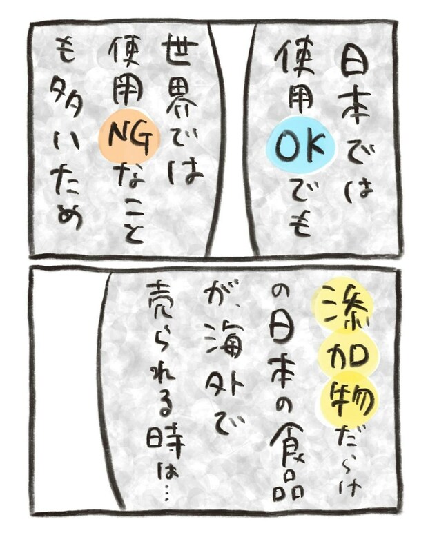 海外では日本の食品が「危険」という括りで販売されていることもあるのだそう。おたんこ助産師さんは、添加物入りの食品は便利な面はあるものの、体調を整えるにあたっては気をつけようと思いました。