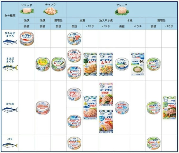 シーチキンの種類が多すぎてよく分からないと言われるので、早見表をご用意しました🐟
