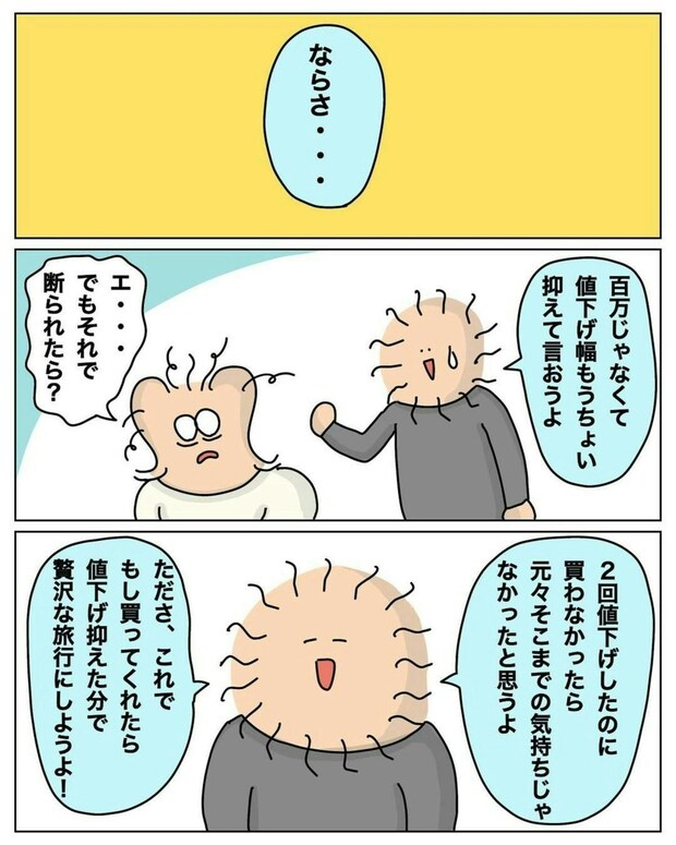 家を売るというのは、諸経費もかかるもの…。納得のできる金額で着地できるのが理想ですよね。おおえもんさんも、旅行をごほうびに、目標金額を明確にし、ゆずれないラインをはっきりと意思表示できたのがよかったですね。