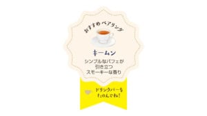 渋みが少なく、スモーキーな香りの「キームン(祁門紅茶)」がクッキー&クリームの甘みとマッチします。
