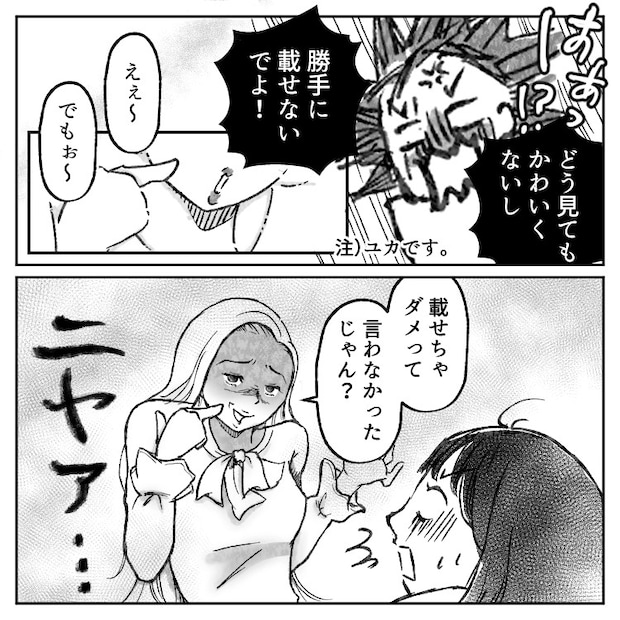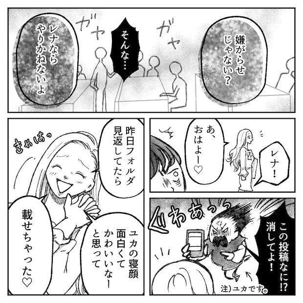 ユカの同級生・レナは最近SNSで人気が急上昇している。かわいくてスタイルの良い彼女にみんな憧れていたが、少々物言いがきつく、周りにはSNSのことでマウントを取ることもあった。そんなある日、ユカが街で偶然、SNSで大人気の美容師に声をかけられてサロンモデルをすることに。かわいくヘアメイクしてもらったユカの写真がSNSに載ると、なんとユカのフォロワー数が急上昇。しかしその事実を知ったレナが、なんととんでもない嫌がらせをしてくることに!?
