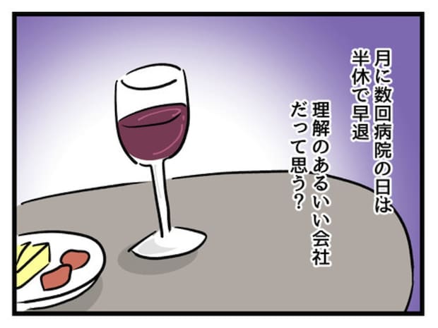 病院の日は半休をもらっているキリコさん。理解のある会社だと思われがちですが、この権利を勝ち取るためにキリコさんはいろいろと戦ったといいます。