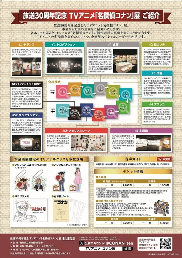 東京で大きな話題を呼んでいる『放送30周年記念 TVアニメ「名探偵コナン」展』 が、ついに鳥取市の鳥取県立博物館にやってきます!