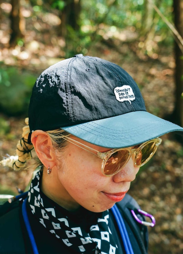 日除けのキャップ&サングラスはマストアイテム。ヴィンテージのキャップでおしゃれ心もお忘れなく。