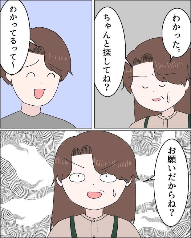 「家が見つかったら出ていく」と言ったショウの言葉を信じ、「ちゃんと探してね?」と念を押して、家が見つかるまでの間、渋々ですが息子夫婦との同居を続けることに決めました。