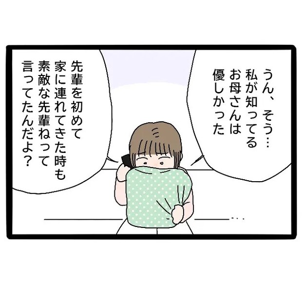 高校生の頃は「素敵な先輩ね」と言ってくれていたのに、なぜ嫁として家にきた途端、いびるようになってしまったのでしょうか。カオリさんの立場からすれば、あんなに優しかった母親が大好きだった先輩を苦しめる存在になってしまったなんて、簡単には受け入れられませんよね。