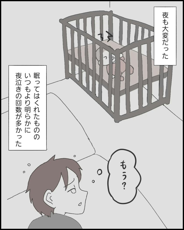 整形外科に2度も来院したのに、娘の右腕は動かないまま。この日の夜泣きはいつもより回数が多い気がして、なっぽさんは不安になってしまいます。