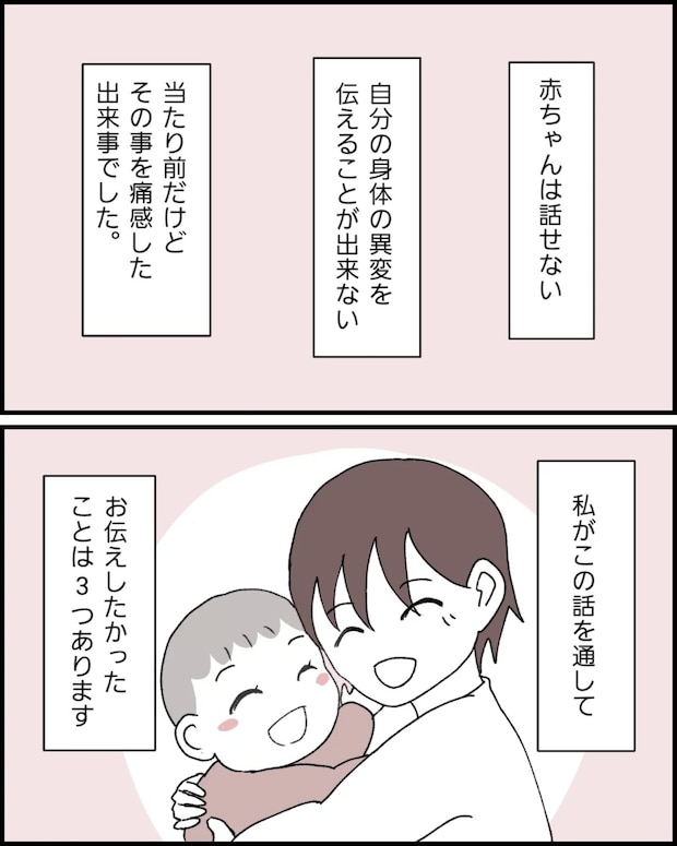 この漫画では赤ちゃんでも肘内障になる可能性があることや、専門医の処置後のようすなどが実体験をもとにわかりやすく描かれています。もしものときに役立ててほしい、そんな作者の思いが込められた作品です。
