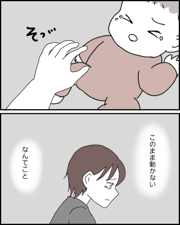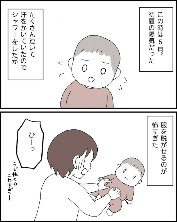 なっぽさんは、ぷくちゃんの動かない腕が気になって服を脱がせるのも慎重になります。そして、いつもより夜泣きの回数が多く、普段と違うことばかりでした。