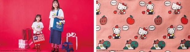 ハローキティのアイコンのひとつである「りんご」や、ファミリアチェックをふんだんに取り入れたオリジナルカットジャカード生地を使用したバッグやポーチ、ファミちゃんとハローキティがなかよく過ごす様子をデザインした衣料やステーショナリーなど、子どもから大人まで幅広く楽しめる計21型のアイテムが登場します。