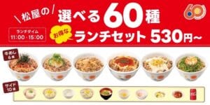 牛めし・カレー・定食・その他丼の「松屋」は、2026年4月7日(火)11時~「松屋の選べる60種ランチセット」の販売を開始します。
