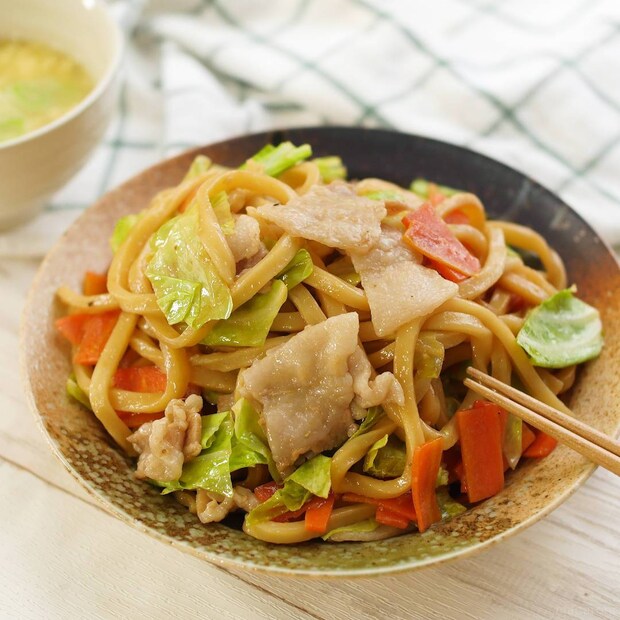 焼きうどんなら、電子レンジとカット野菜を使えば簡単。うどんの食感がもちもちに仕上がります。ボリューム満点でお腹もしっかり満たされますよ。調理の手間が少なく、洗いものも最小限。火を使いたくないときにもおすすめです。