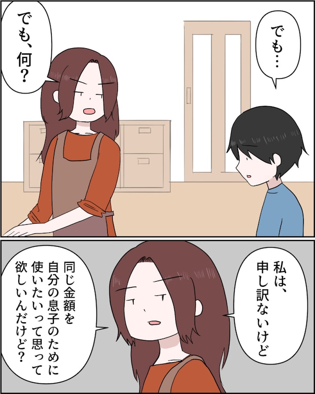 「でも・・」と言う謙介。「でも、何?私は、申し訳ないけど同じ金額を自分の息子のために使いたいって思って欲しいんだけど?」と舞香ちゃんのことばかりで瑠衣のことは全く口にしない謙介への不満が口をついて出ました。