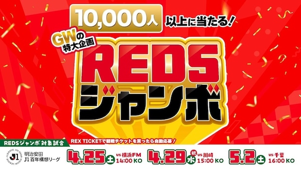 ゴールデンウィークのホーム3連戦では、来場者を対象とした抽選キャンペーン「REDSジャンボ」を実施します。