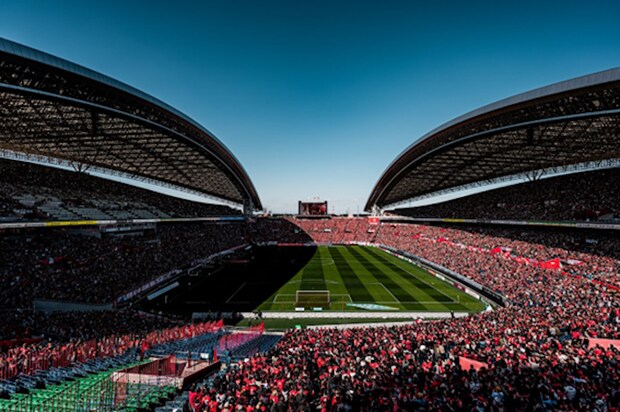アジア最大級のサッカー専用スタジアムが赤く染まり、大歓声とともに選手たちが躍動する。