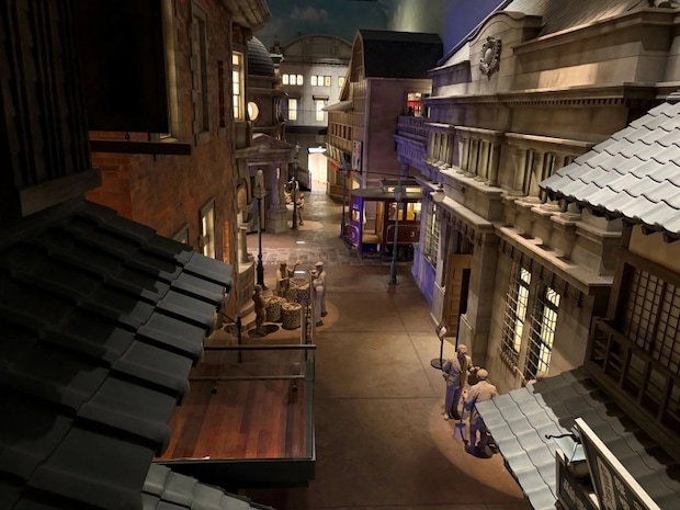 海峡レトロ通りは無料展示エリアで、大正時代の門司港の街並みが再現されています。「バナナの叩き売り」発祥の地であることから、叩き売りをしている人々の石像などが置いてあり、当時の門司港の様子を知ることができます。