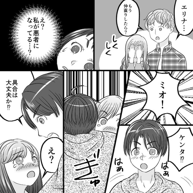 彼氏のリョウとラブラブ交際中のエリナ。反対に、友達のミオは彼氏と別れたばかりで落ち込んでいた。そのせいで彼氏がいるエリナに対して何かと嫌味を言ってくるようになり、ギスギスした関係になってしまった2人。ある日、ミオと仲直りがしたいと考えたエリナは、彼女の家に行くことに。しかし、そこで見かけたのは、なんとエリナの彼氏だった!?