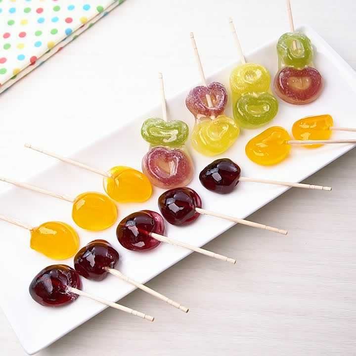 りんご飴やいちご飴のようにグミに飴をまとわせます。まわりはカリッと中のグミは飴の熱で少し溶けて違う食感に♪新しいスイーツです!