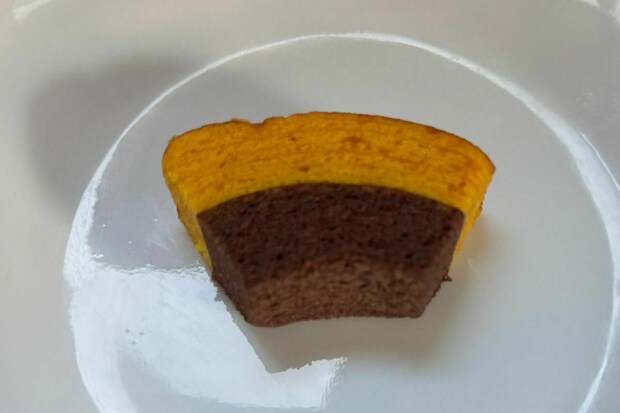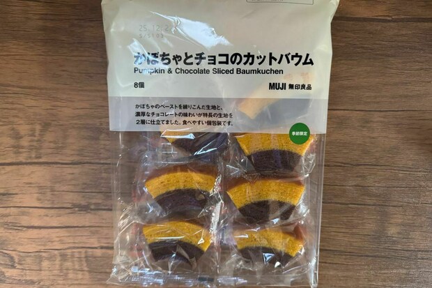 かぼちゃペーストを練り込んだ生地と、濃厚なチョコレート味が特徴の生地という、2つの異なる生地を層にしたカットバウム。