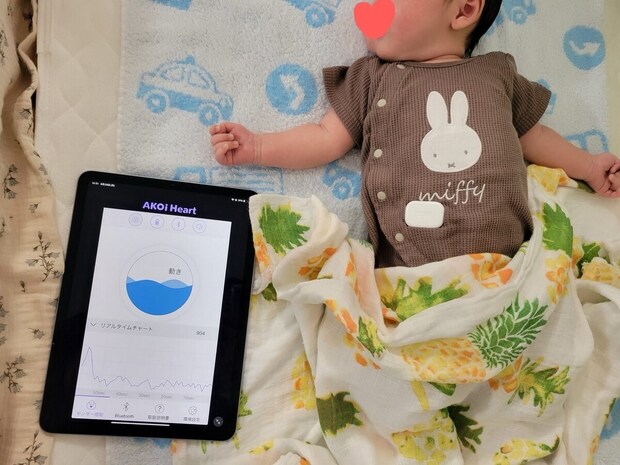 「AKOi Heartという、常に赤ちゃんのお腹の動きをモニターするデバイス。息をしているか心配ですが、何かあればアラートで知らせてくれるので、親がしっかり眠ることができました」(湯浅さん)