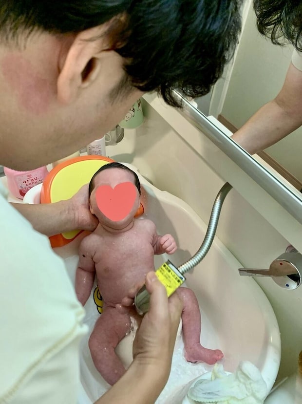 「育休中の次男の沐浴の様子。妻の実家が遠方なので、里帰りせずに乗り切りました」(湯浅さん)