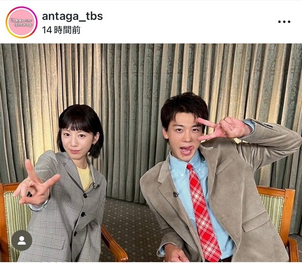 この日公式Instagramは「明日はみんなテレビの前から離れられないよ」というコメントとともに竹内と夏帆の写真を投稿。竹内は舌をぺろりと出してピースポーズをする一方で、夏帆は笑顔で大きくピースを前に突き出している。