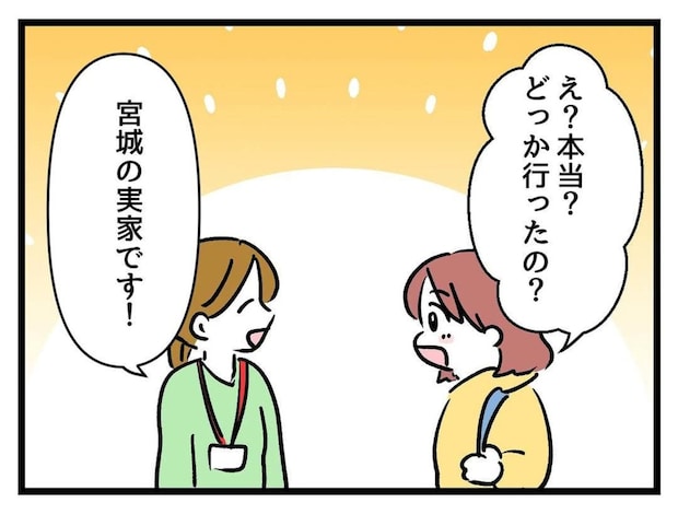 たまみが更衣室に入ると、たしかにおみやげの箱が置いてあります。実家に帰るとその土地ならではの銘菓があって、どれもおいしいですよね。