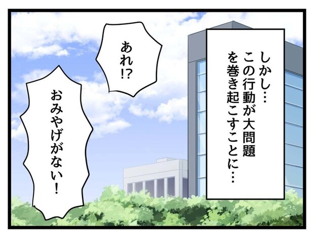 たまみはおみやげを何個かバッグに入れていたように見えますね。その後、他の同僚が「おみやげがない」と騒いでいます。まさかとは思いますが、たまみはいったいどのくらいの数を取ったのでしょうか。