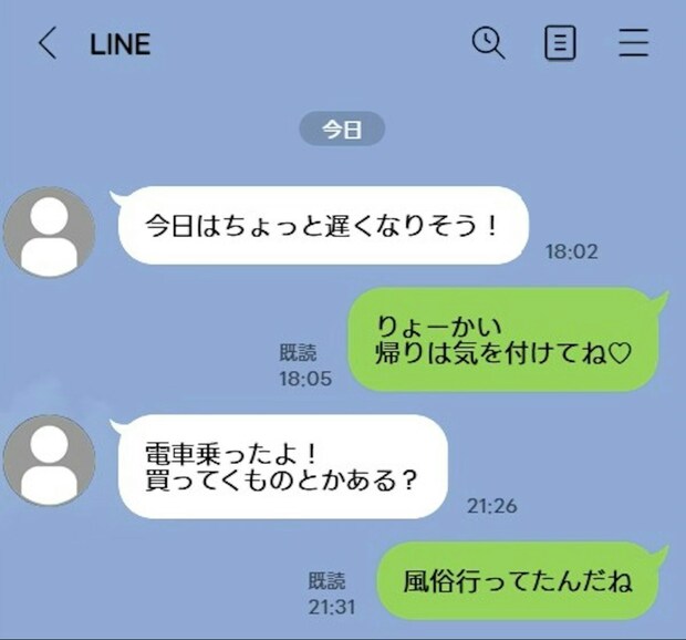 夫は今仕事中ですが、「風俗行ってたんだね」とだけLINEしました