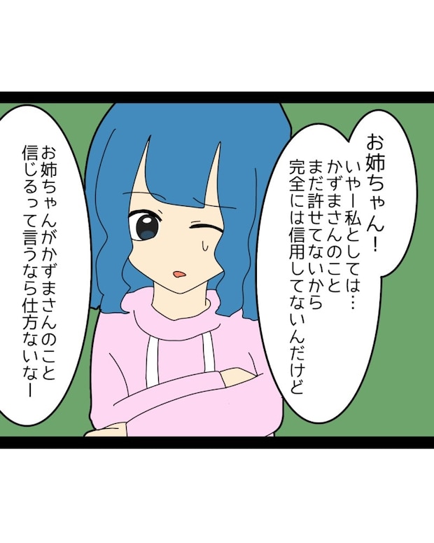 義母に苦しめられた数か月間、みゆさんには安らげる時間がほとんどありませんでした。実家に戻り、ようやく久しぶりにホッとできる時間が生まれたようです。ただ、妹のりなさんは、いまだにかずまさんのことを信用しきれない様子でした。