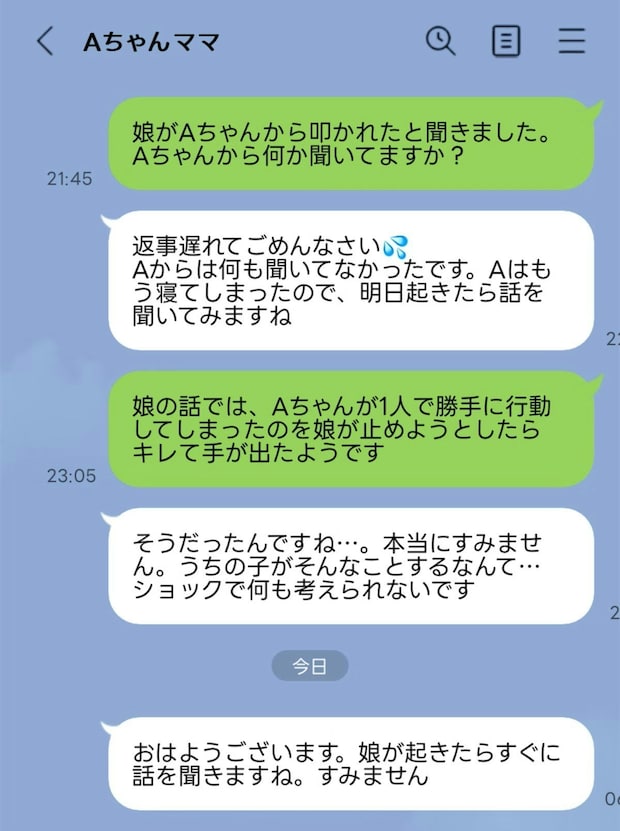 あまり話したことがないママさんでしたが、保育園からのつながりでグループLINEが出来てたので、そこから個人的に謝罪の連絡をしました。