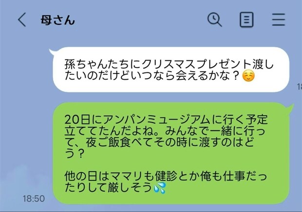夫が義父母にLINEで聞きました。